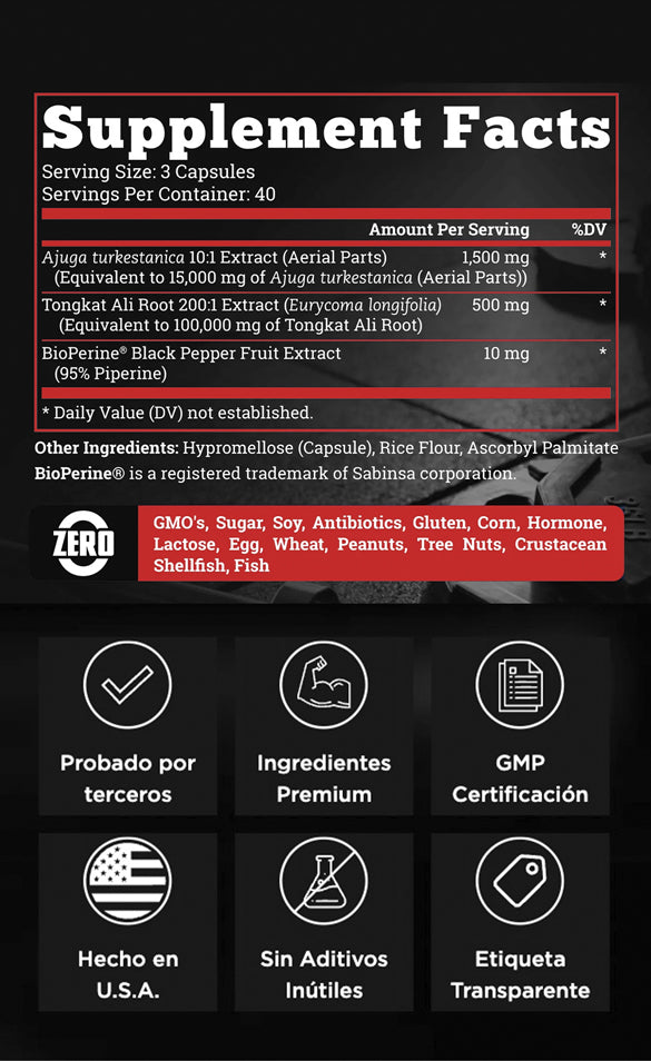 TURKESTERONE® Aumento de Testosterona, Energía Y Rendimiento Sexual